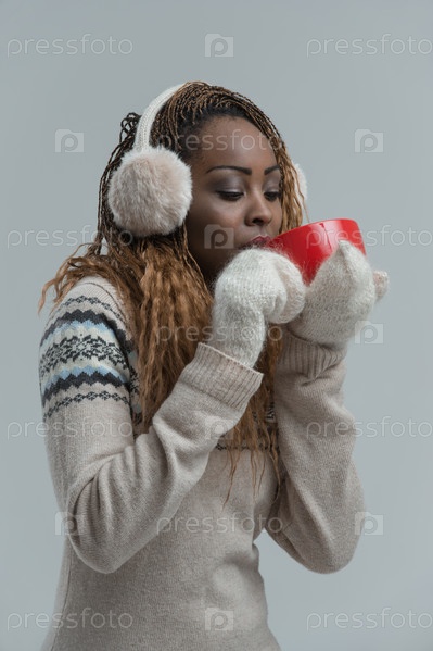 Женщина в зимней одежде с горячим напитком