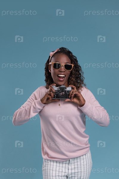 Молодая африканская женщина с фотоаппаратом