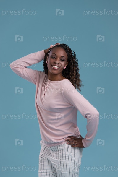 Молодая женщина позирует в студии