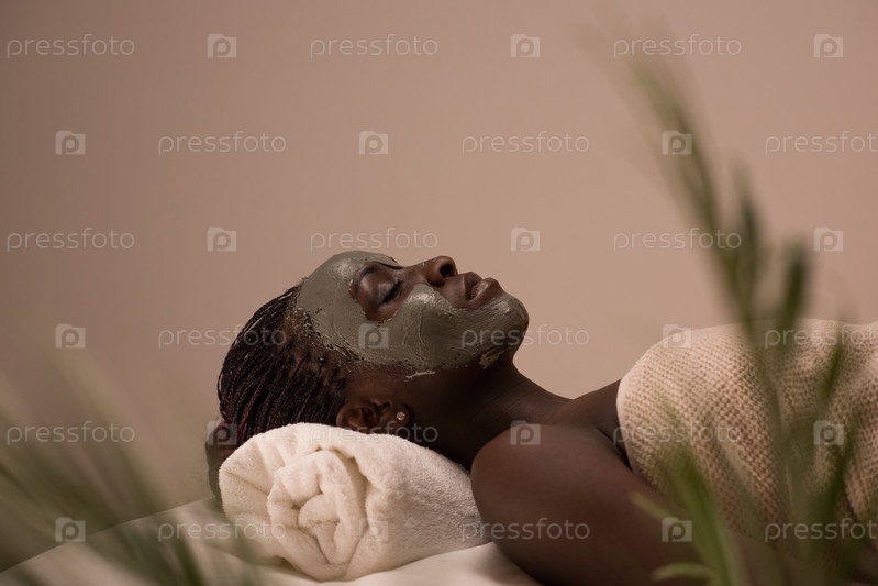 Темнокожая женщина расслабляется в спа-салоне