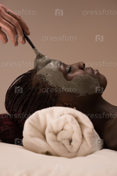 Профессионал наносит грязевую маску на лицо женщины