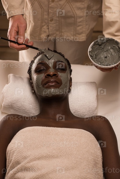 Профессионал наносит грязевую маску на лицо женщины