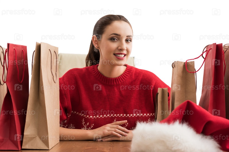 Женщина с рождественскими покупками