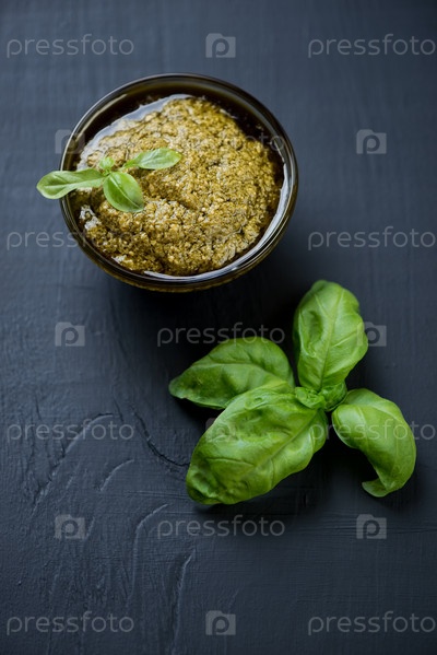Соус песто на черном фоне
