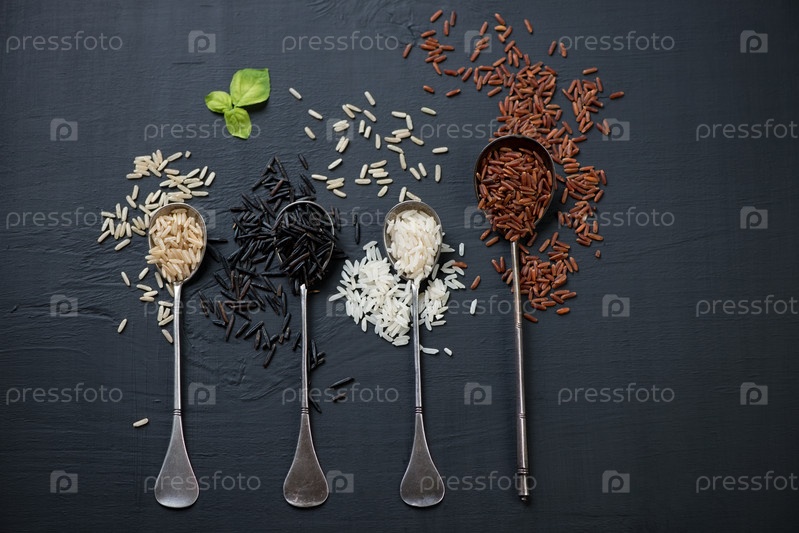 Зерна красного, белого, черного и коричневого риса