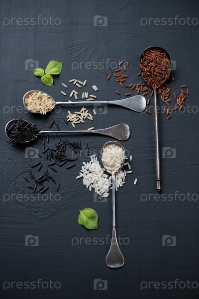 Красный, коричневый, черный и белый рис