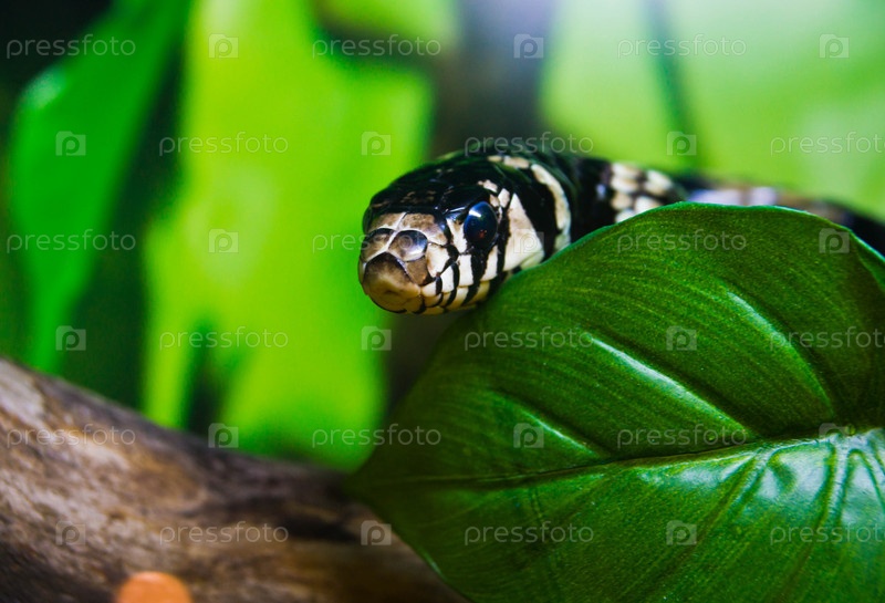 Пятнистая змея среди листьев