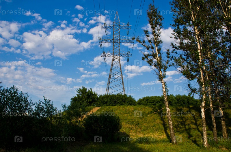 Линия электропередачи на зеленом холме