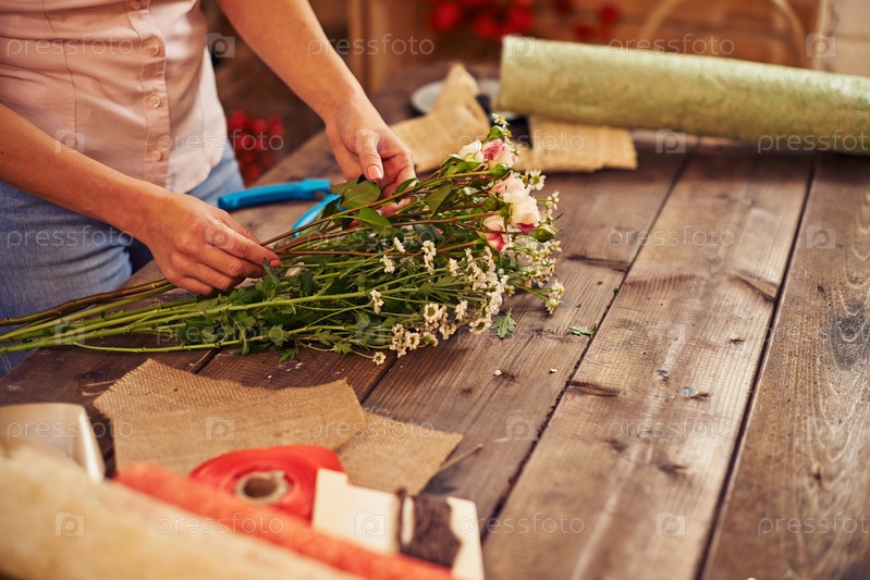 Флорист делает букет