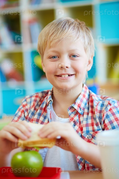 Школьник с сэндвичем