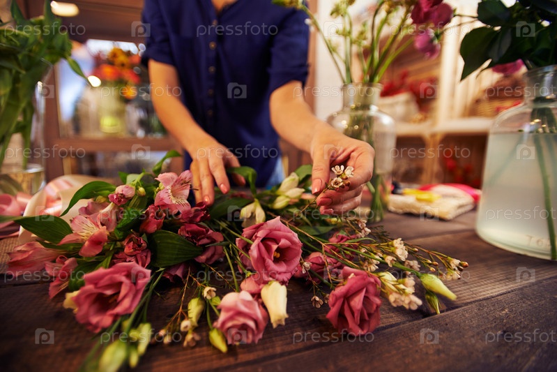 Флорист делает букет