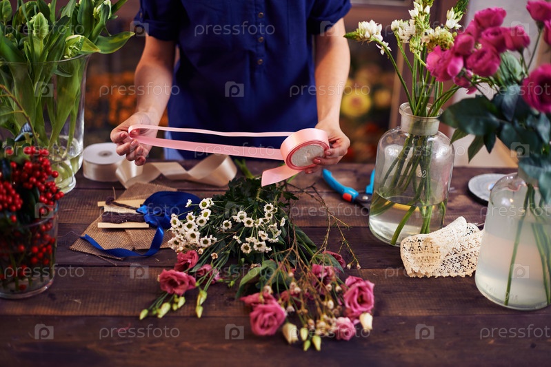 Флорист делает букет