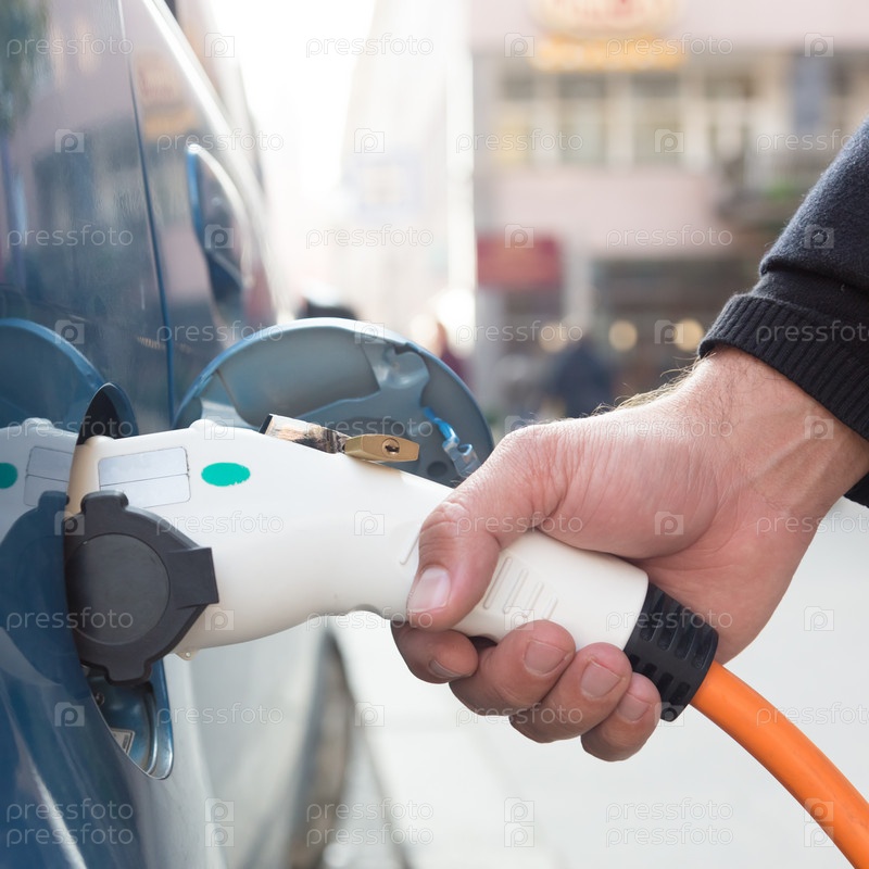 Электрический автомобиль на зарядной станции
