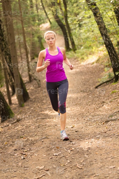 Девушка на пробежке в лесу