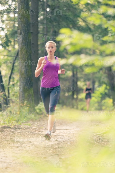 Девушка на пробежке в лесу