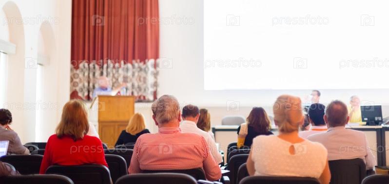 Оратор на бизнес-конференции с презентацией