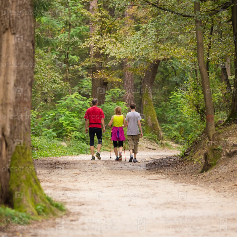 Семья на прогулке в лесу