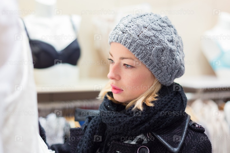 Женщина делает покупки в магазине нижнего белья