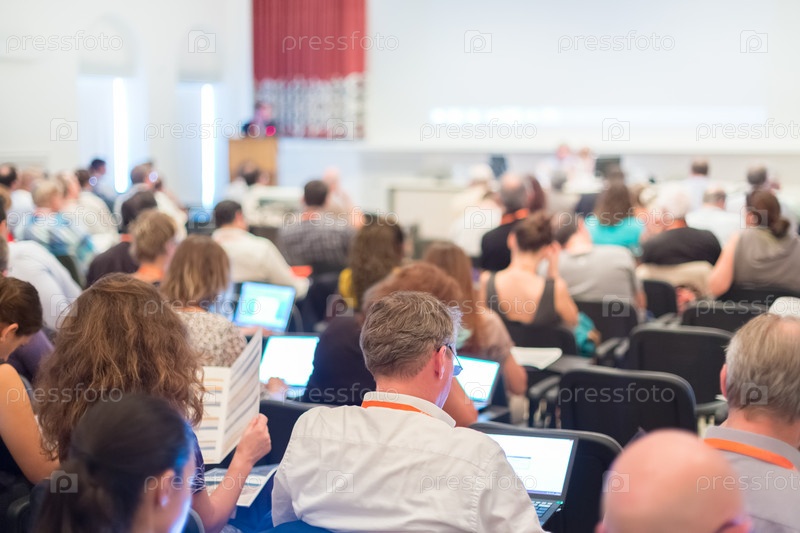Оратор на бизнес-конференции с презентацией