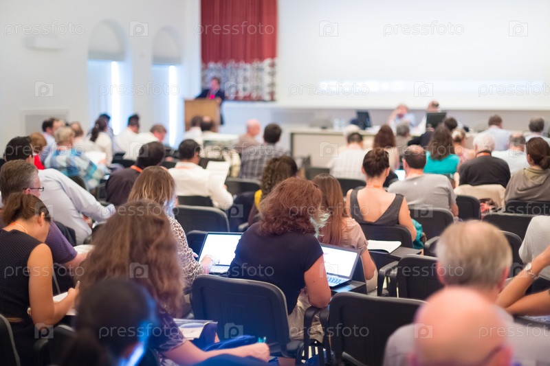 Оратор на бизнес-конференции с презентацией