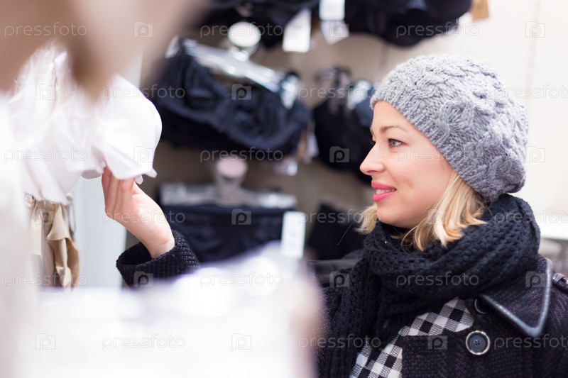Женщина покупает белье в магазине