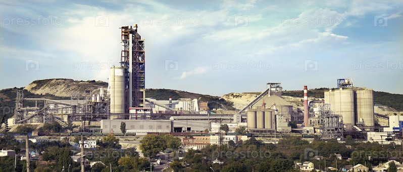 Панорама цементного завода в солнечный летний день