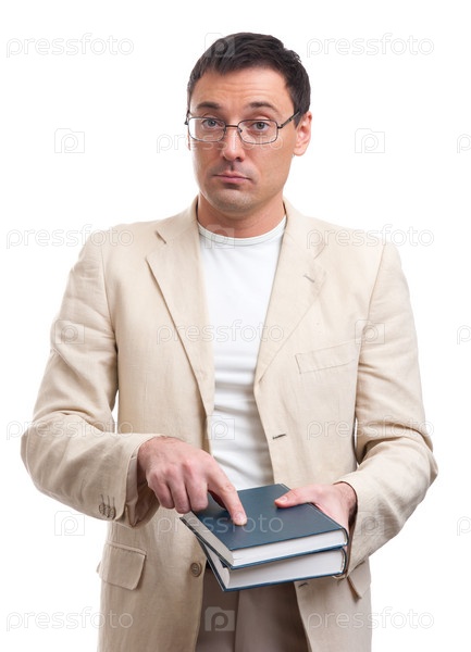 Мужчина держит книги в руках