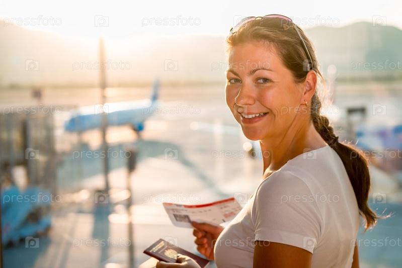 Портрет счастливой девушки в аэропорту