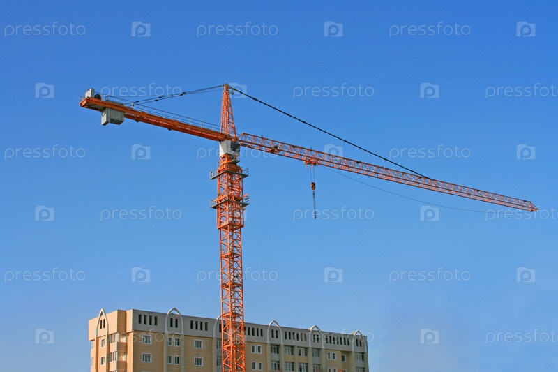 Подъемный кран на фоне синего неба