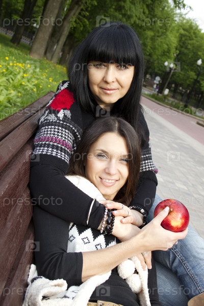 Мать и взрослая дочь в парке