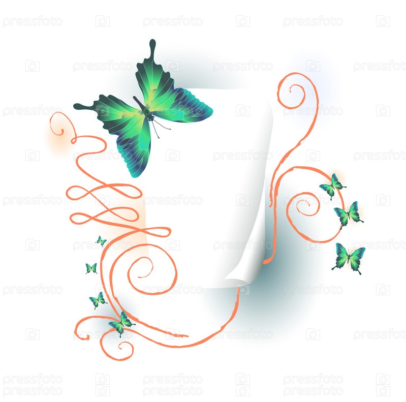 Белый лист бумаги с зелеными бабочками