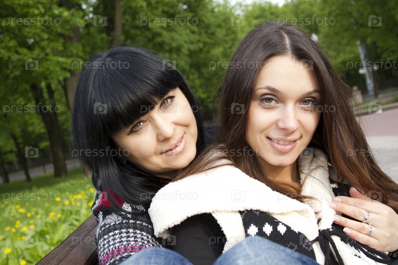 Мать и взрослая дочь в парке