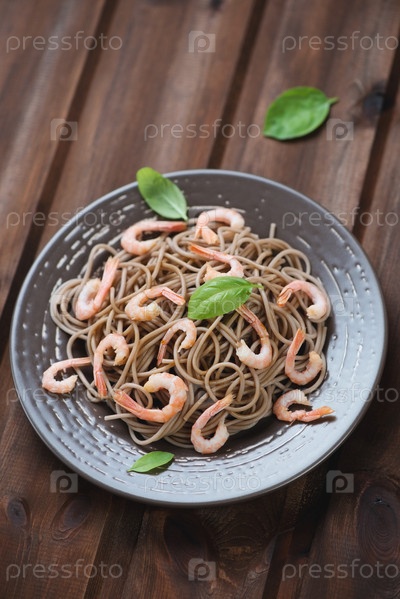 Гречневая лапша с креветками