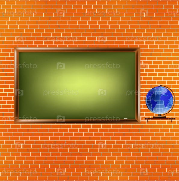 Предметы школьного интерьера на фоне стены из декоративного кирпича