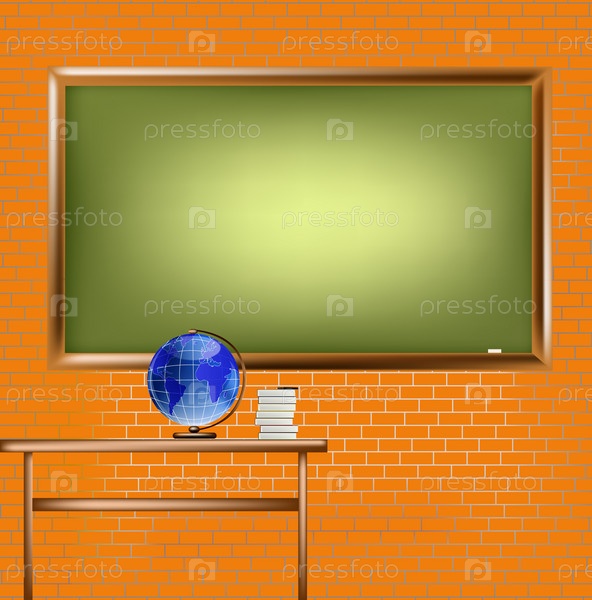 Предметы школьного интерьера на фоне стены из декоративного кирпича