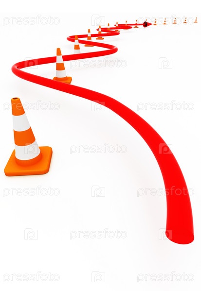 Стрелка, извивающаяся между оградительными конусами
