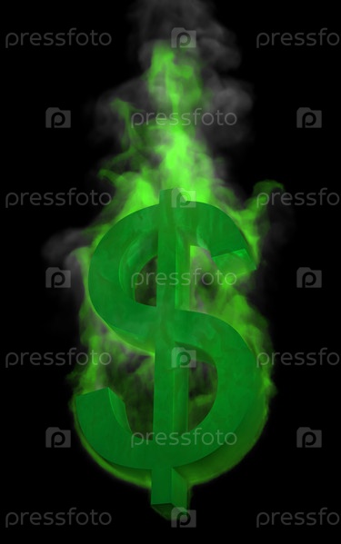 Огненный значок доллара на черном фоне