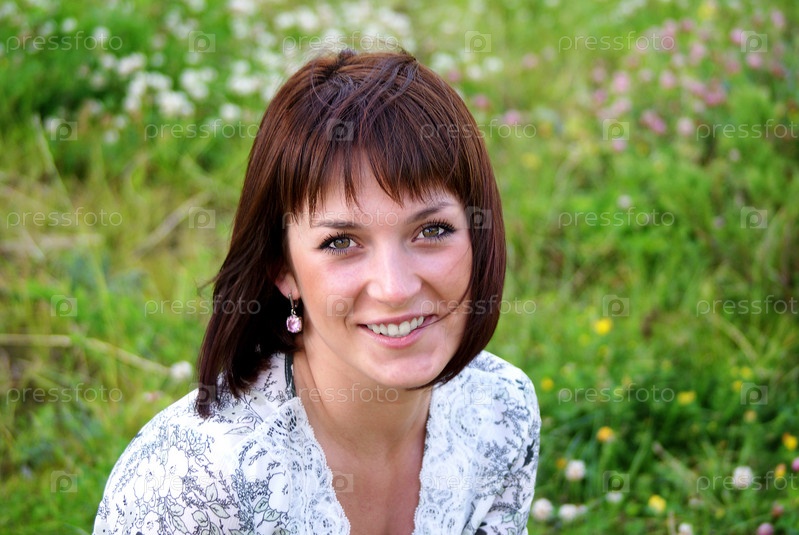 Улыбающаяся девушка на зеленом лугу