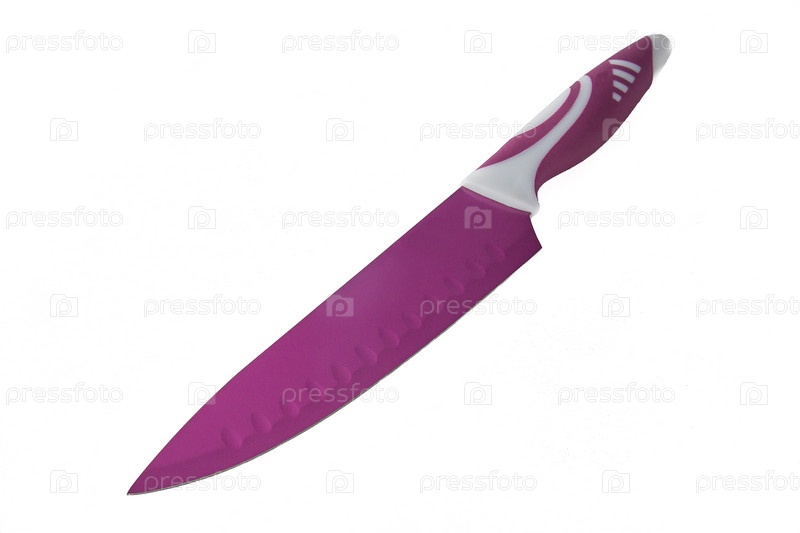 Кухонный нож фиолетового цвета на белом фоне