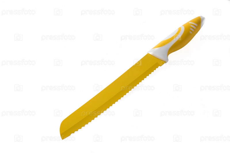 Кухонный нож с лезвием в виде пилы на белом фоне