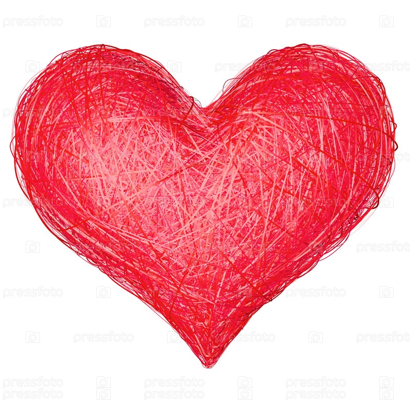 Сердце из красных лент, изолированное на белом фоне. 3D-изображение высокого разрешения