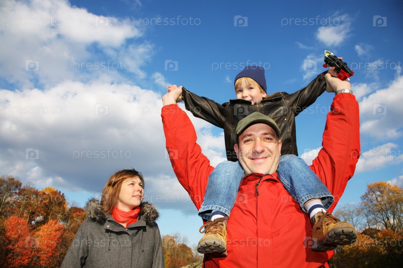 Молодая семья в осеннем парке