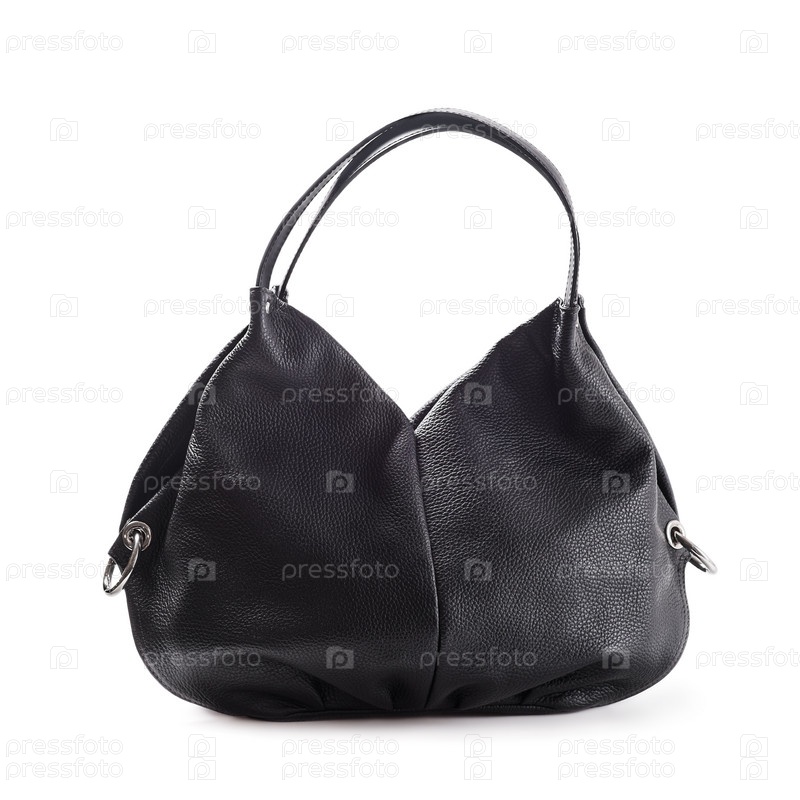 Стильная женская сумочка черного цвета на белом фоне