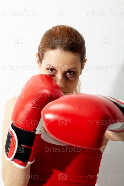 Женщина-боксер с синяком под глазом