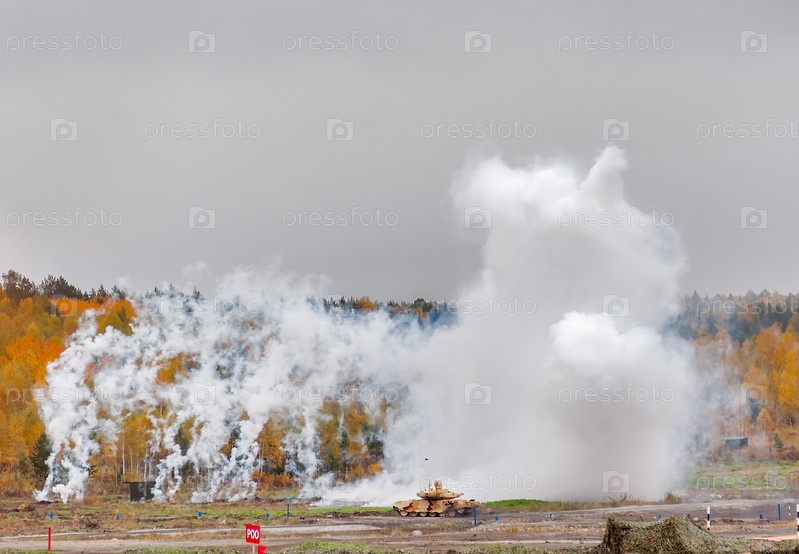 Экипаж танка Т-90С пустил дымовую завесу