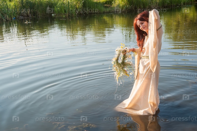 Красивая рыжеволосая девушка в воде