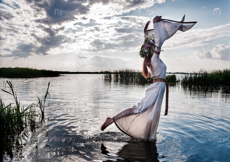 Красивая женщина с венком из цветов