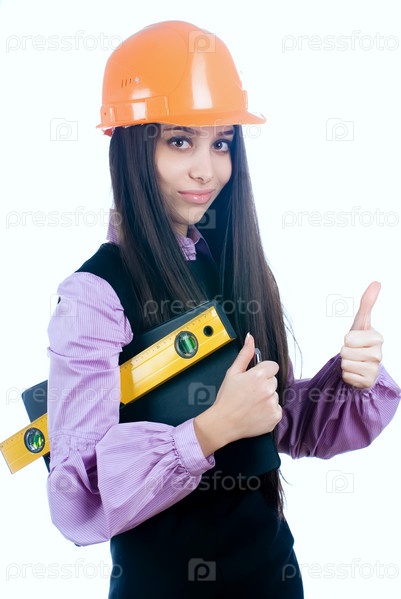Привлекательная девушка с уровнем