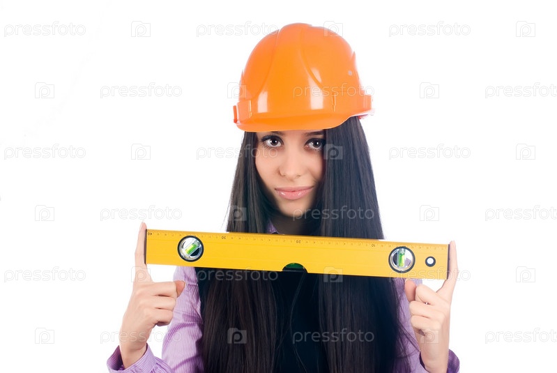 Привлекательная девушка с уровнем