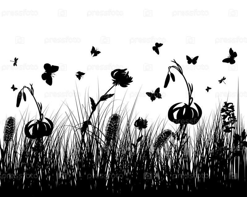 Силуэты полевых цветов и бабочек